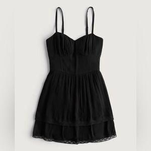 Hollister Black Double Tier Lace Trim Mini Dress Medium