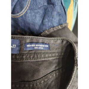 Hollister Black High-Rise Boyfriend Shorts W27 100% Cotton Distressed Design Wom