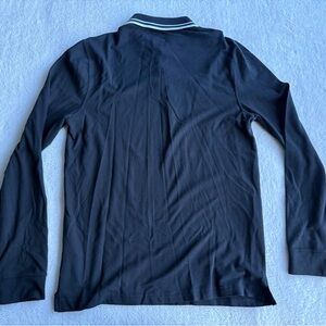 Classic black polo with long sleeves. Features subtle logo detail. Ideal for versatile wear.