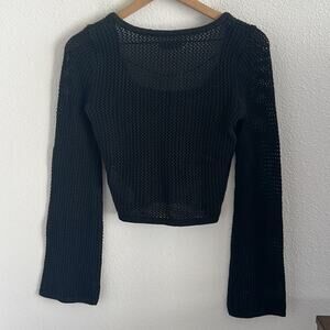 Hollister Black Open Knit Squared Neck Wide Sleeve Top Small