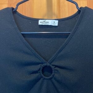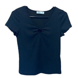 Hollister Black Ribbed Tight T-Shirt with Ring Cut-Out