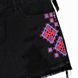 Fabulous Hollister women's junior's black denim short shorts! Love the pink quilting patchwork embroidery!