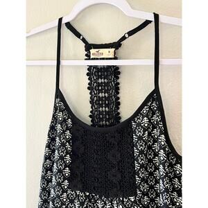 Hollister Black White Razorback Boho Shoulder Strap Short Dress Size M