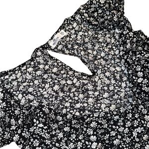 Chic mini dress with floral pattern. V-neckline and short sleeves. Perfect for casual outings. Excellent condition
