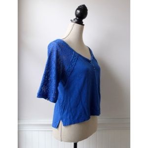 Hollister Blue Button Henley Top with Lace Sleeves Size Small