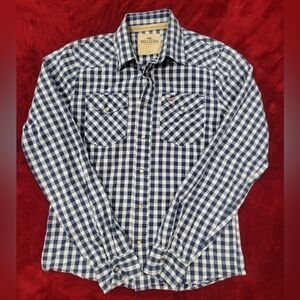 Hollister Blue Casual Pearl Snap Button Down Shirt with Gingham Pattern