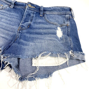 Hollister Blue Denim Cut Off Shorts Button Front Boyfriend Distressed size 9/29