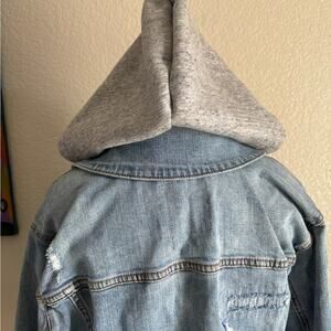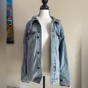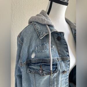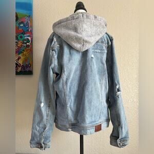 Hollister Epic Flex Distressed Denim Jacket with Hoodie – Size Large