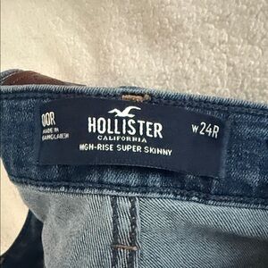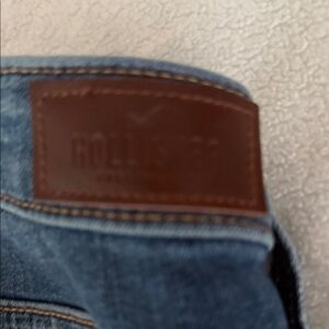 Stylish blue denim jeans with a brown leather patch. Ideal for everyday wear.