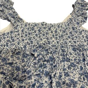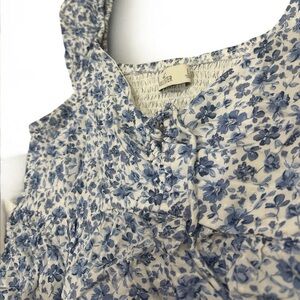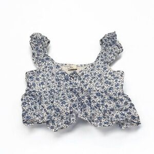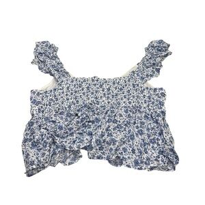 Hollister Blue Floral Cropped Tank Top Loose Ruffle Top Large