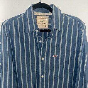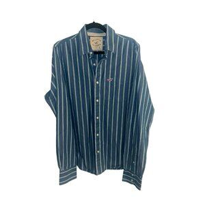 Hollister Blue Green Striped Long Sleeve Button Down Collared Y2K Shirt Large