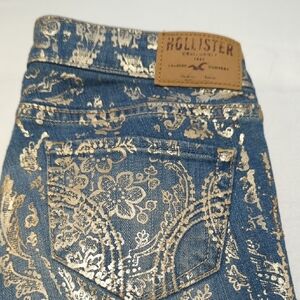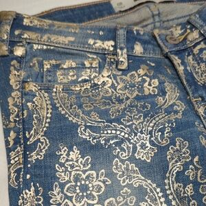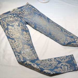 Stylish blue jeans with elegant gold design. Perfect for a chic look. new with a tag, I bought these for my granddaughter and she didn't like them, never worn, new, amazing, beautiful pattern, very very cool jeans ...