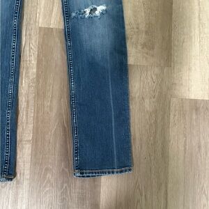 Hollister Blue Straight Leg Jeans with Distressed Details