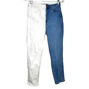 Hollister Blue White Color Block Ultra High Rise Mom Jeans 26
