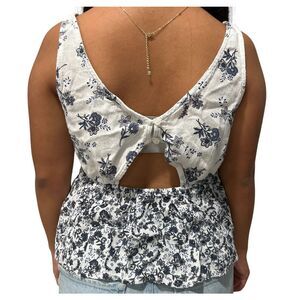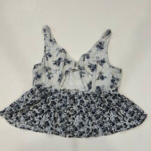 Hollister Blue White Floral Peplum Tank Top Women’s Small Sleeveless Summer Blou