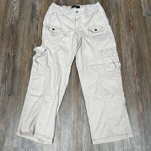 Stylish cargo pants from Hollister. Features multiple pockets. Available in blue and beige.
