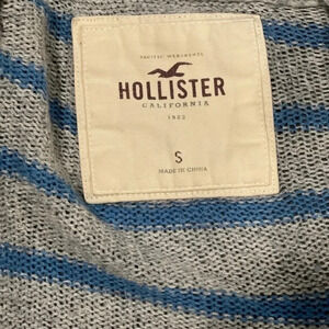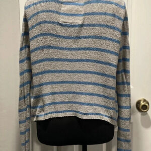 Hollister Blue and Grey Striped Open Front Cardigan Small