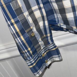 Hollister Blue and White Plaid Button Down snap Shirt large cotton