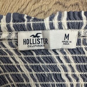 Hollister Blue and White Stripe Cropped Smocked Tank Top