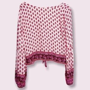Hollister Boho Long Sleeve Crop Top Pink Flowy Button Front Shirt Womens Size M