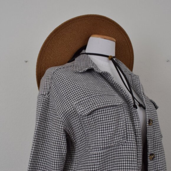 Hollister Boyfriend Fit Shirt Jacket M Houndstooth Pattern Gray/White