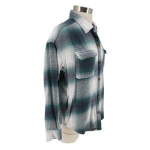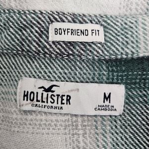 Hollister Boyfriend Flannel Shacket Green Plaid Long Sleeve Button Shirt Medium