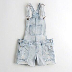 Hollister Boyfriend Short Overall Light Wash Distressed Shortalls