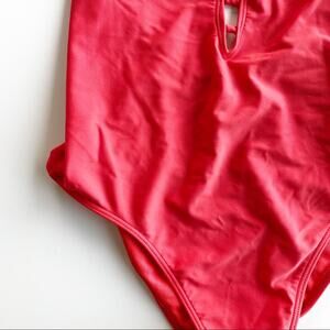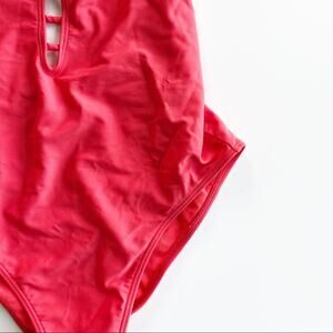 Plunging neck with strappy detail bright coral one piece swimsuit from Hollister. Missing padding. Size small.