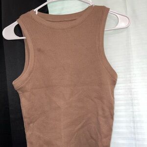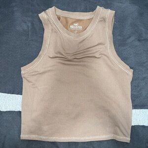 This Hollister tank top features a fitted, ribbed design in a rich brown hue. The sleeveless style and stretchy material ensure a comfortable and flattering fit. Ideal for layering or wearing alone, this top is a versatile addition to any wardrobe.