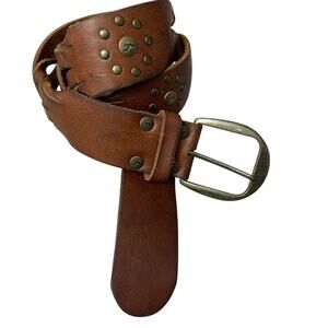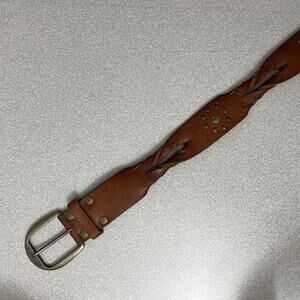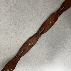 This listing is for a Hollister Womens Brown Twisted Leather Studded Belt. Approx 1.75in wide. Studded. Adjustable.