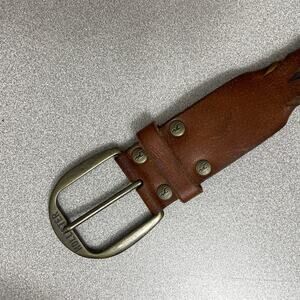 Hollister Brown Leather Belt Womens Large Brass Buckle Twisted Preppy 1.75in