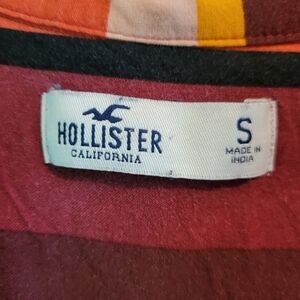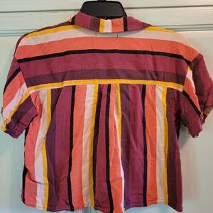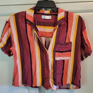 Hollister Burgundy Orange Stripe Short Sleeve Button Up Crop Top