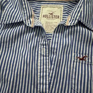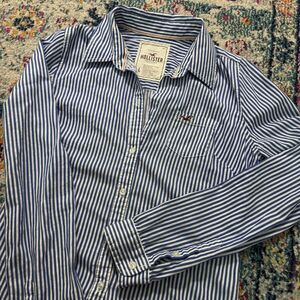 Hollister Button Down Long Sleeve Shirt Blue White Stripe Women’s Sz Large