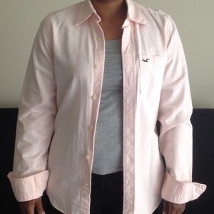 Pale pink button down shirt made of great quality cotton. Super comfortable and great for tucking in slacks or layering over tees. In EUC!