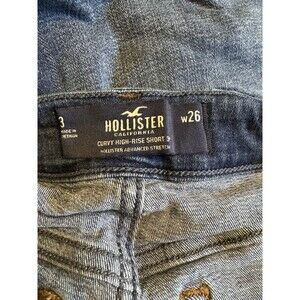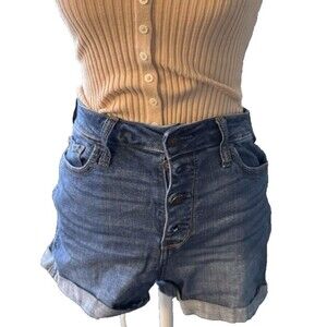 Hollister Button Fly Curvy High Rise Cuffed Womens Blue Jean Shorts Size 26