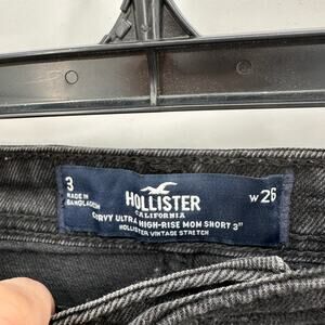 Hollister Button Fly Curvy Ultra High Black Mom Denim Shorts 3" //26