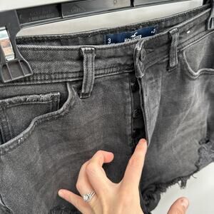 Hollister Button Fly Curvy Ultra High Black Mom Denim Shorts 3" //26