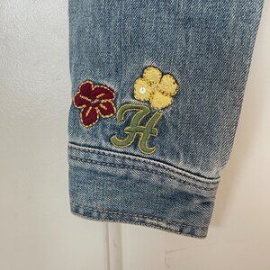 Hollister Cali Denim Jean Jacket Medium Tropical Palm Tree Flowers Embellished