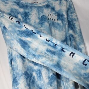 Hollister California Blue Tie Dye Long Sleeve Crop Top Graphic Tee Size M