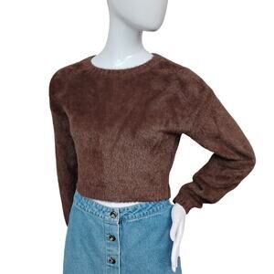 Hollister California Fuzzy Sweater Top Size XS Brown Crewneck Super Soft