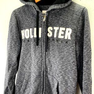 Hollister California full zip hoodie in charcoal gray. Drawstring hood, front pockets, good condition. Size S.