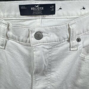 The Hollister California Men's Epic Flex Slim Straight jeans in white are a stylish and versatile addition to any wardrobe. Made from a blend of cotton and polyester with a denim fabric type, these jeans offer a comfortable and trendy fit. Featuring a slim fit and a straight leg style, they are designed for a regular size 31 waist and 32-inch inseam. The distressed detailing and pockets add a touch of flair to this classic pair of jeans that are perfect for any casual occasion.