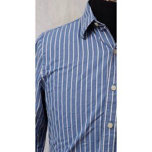 Brand & Description: Hollister California Pacific Merch Medium Blue White Stripe Long Sleeve Shirt