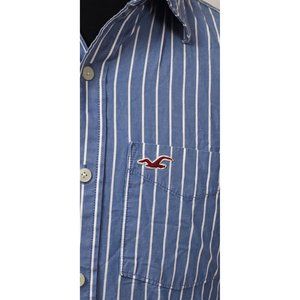 Hollister California Pacific Merch Medium Blue White Stripe Long Sleeve Shirt