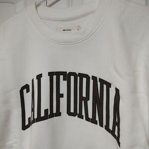 Cozy white sweatshirt with bold 'California' print. Perfect for casual wear.
