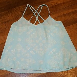 Only worn once. Hollister sheer , almost a satin feel , has unique double Spaghetti straps. loved the top ,and the color, just have too many.