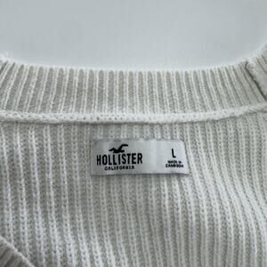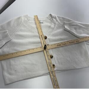 Hollister Cardigan Sweater Womens Large White Soft Ribbed Button Cropped V Neck