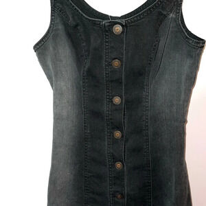 Hollister Charcoal Black Button Front Denim Mini Dress Xsmall Women’s