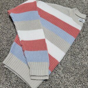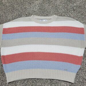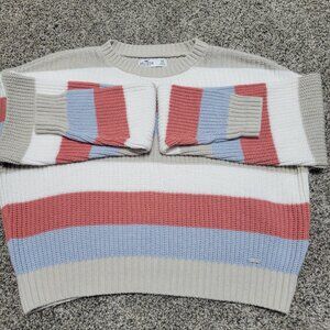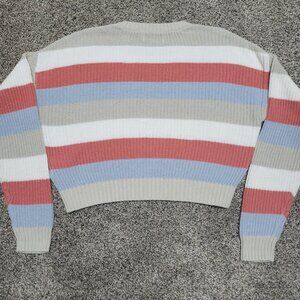 Hollister Chunky Knit Cropped Crewneck Sweater Striped Multi-Color Size Xsmall