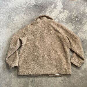 Hollister Coat Women Sz Large Collared Teddy Pockets Zip Closure Short Tan Brown
